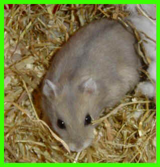 Arrivée, le dimanche 7 mars 2004 à 11H15, d'une petite femelle hamster russe couleur saphir, de 6 semaines environ